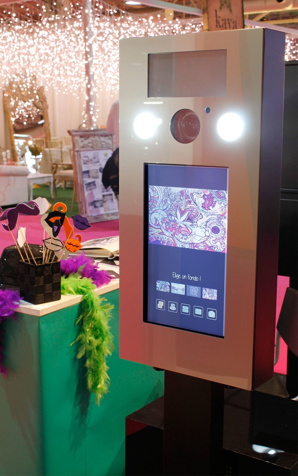 - I3 / i5 computer and 15.6 "vertical touch screen, with touch buttons, to take pictures, print, reprint, choose photos, record video, etc. depending on the service offered.