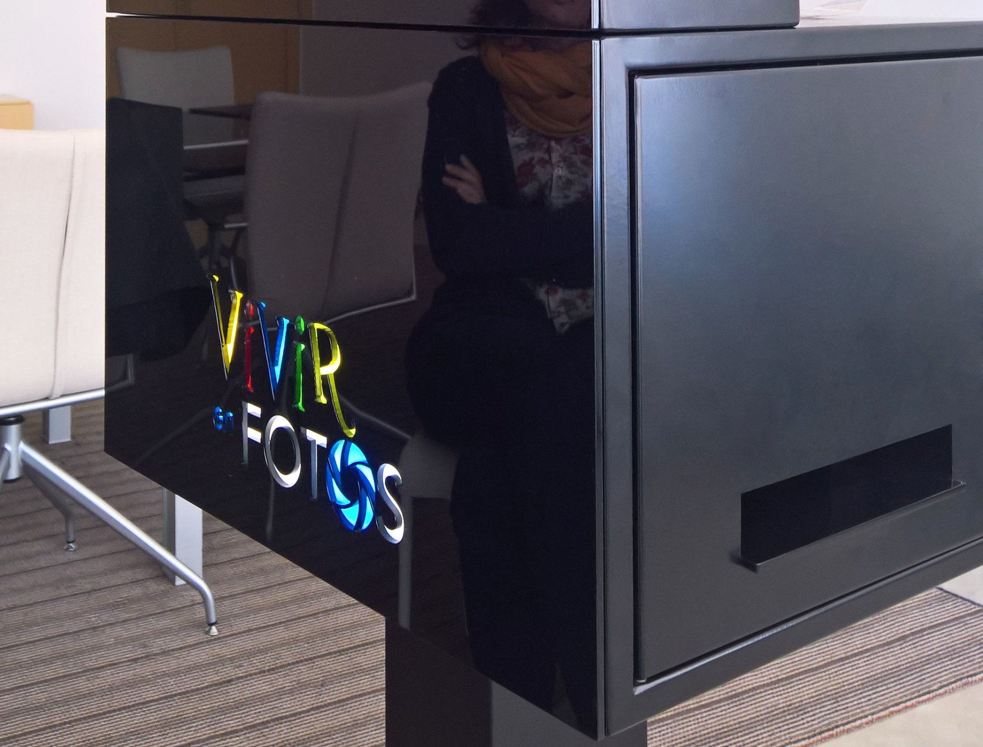 The sale of the RF58 photo booth is one of the most important because its elegant design, with pure lines, its frontal finish with the appearance of black glass gives a pleasant presence in any space.