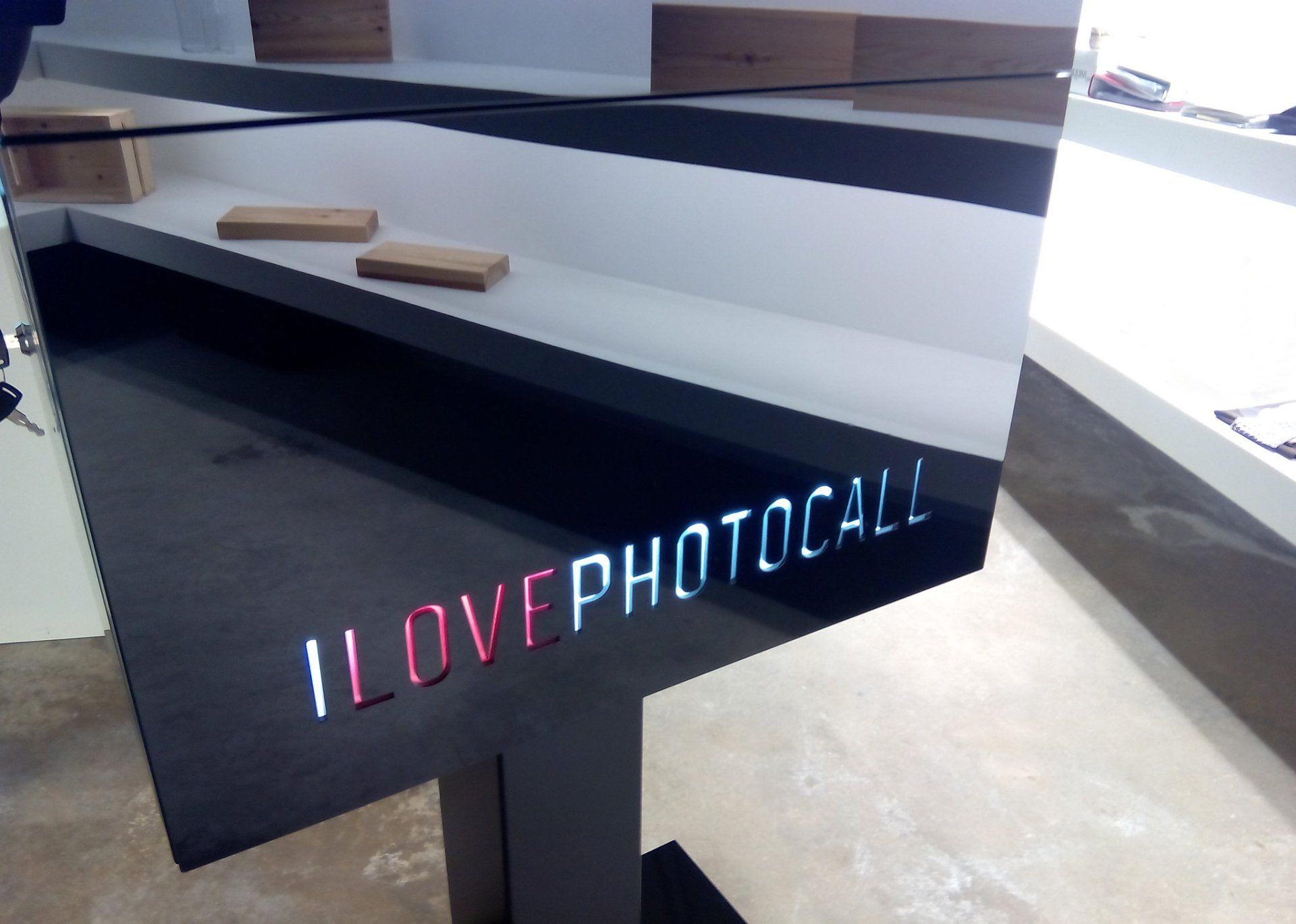 - Front finish in black or colored methacrylate with your brand openwork and backlit on the inside.